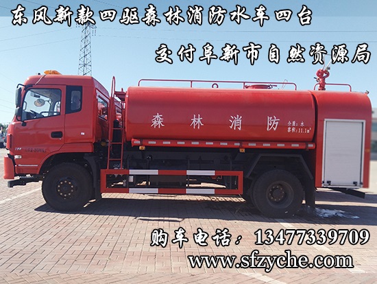 遼寧省阜新市自然資源局下屬的林業(yè)和草原局森林防火辦公室采購的東風(fēng)新款四驅(qū)森林消防水罐車具體參數(shù):東風(fēng)四驅(qū)越野森林消防水罐車_東風(fēng)11.1噸四驅(qū)消防水車_國五四驅(qū)越野森林滅火水車_東風(fēng)4×4越野SCS5183GPSEQ型四驅(qū)綠化噴灑車簡介:采用東風(fēng)EQ2180GD5DJ型越野汽車底盤,東風(fēng)153寬體駕駛室(選裝D913新款駕駛室),4×4驅(qū)動,康明斯ISB190 50國五發(fā)動機(jī),六檔變速箱,東風(fēng)商用車橋,前驅(qū)動橋3.8噸,后橋10噸,10.00R20輪胎,軸距4500mm,電動玻璃,方向助力,斷氣剎,ABS。罐體采用優(yōu)質(zhì)碳鋼Q235板材,板材厚度4mm,罐體容積11.1立方,安裝夾心取力器,后置泵箱,消防栓接口左右各一個(gè),消防炮采用PS30-50D消防水炮,流量40L/S/1.0MPa 水射程:≥50m,消防泵采用常壓消防泵型號:CB10/40車用消防泵,流量:40L/s,壓力:1.0MPa,駕駛室頂部安裝長條警燈帶喊話器,全車顏色橘紅,兩側(cè)噴涂白色森林消防字樣。