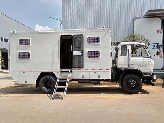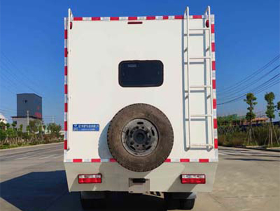 三、東風(fēng)四驅(qū)越野宿營車, 4驅(qū)越野宿營車用途:適用公安、特警、公安、邊防、衛(wèi)生、交通、礦山、地質(zhì)、軍隊(duì)等部門]長(zhǎng)期野外作業(yè)、勘察、救援、搶險(xiǎn)、救災(zāi)等宿營用,箱體空間利用大化。內(nèi)部配置:配備前儲(chǔ)物柜、后儲(chǔ)物柜、液晶電視機(jī)應(yīng)急燈、頂燈、頂置空調(diào)、床墊、被褥等。選裝配備8組豪華折疊臥鋪、未鋪上下梯、安全保險(xiǎn)帶、電源插口等,細(xì)節(jié)精致。外置燃油加熱器、頂護(hù)欄、前爬梯、隱藏抽拉梯、專用房車門、專用玻璃滑窗、警示燈等。