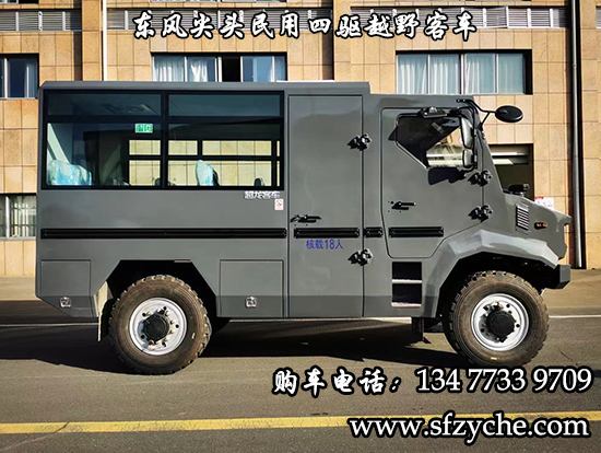 東風(fēng)尖頭四驅(qū)民用越野客車(chē),東風(fēng)尖頭礦用四驅(qū)救援車(chē):采用東風(fēng)特汽四驅(qū)原廠越野底盤(pán),康機(jī)220馬力國(guó)六排放,自動(dòng)擋變速箱,前后大江車(chē)前輪邊減速帶差速鎖,半自動(dòng)中央充放氣系統(tǒng),株齒鋁殼分動(dòng)箱,全新的猛士三代尖頭設(shè)計(jì),整車(chē)越野能力強(qiáng),核定載客可以達(dá)到19人,頂置空調(diào),獨(dú)立燃油暖風(fēng)更是標(biāo)配。