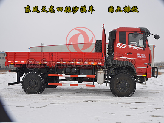 全新國六東風(fēng)四驅(qū)六驅(qū)沙豹沙漠車為特殊行業(yè)精心打造,適合全地形無路區(qū)域的全時4×4、6×6驅(qū)動車型,選用康明斯9升國六發(fā)動機(jī),動力涵蓋340---400馬力,動力強(qiáng)勁、性能可靠,采用7噸及10噸級雙級輪減前、后橋,離地間隙大、通過性好,前、中后橋配備輪間、軸間差速鎖裝置可適應(yīng)極惡劣道路狀況下的通過要求,先進(jìn)的遠(yuǎn)距離電控氣動裝置可實(shí)現(xiàn)高、低檔及前橋鎖止功能的轉(zhuǎn)換,多管旋流式三級空濾進(jìn)氣系統(tǒng)可有效地阻止極細(xì)微的粉塵進(jìn)入發(fā)動機(jī),外接式中央充放氣裝置可同時或單獨(dú)快速調(diào)節(jié)輪胎氣壓,越野和沙漠輪胎的互換可使車輛通過性適合各種地形地貌,選裝前后液壓絞盤等裝置能使車輛在各種環(huán)境下保持良好的狀態(tài)及自救互救功能,沙漠車使用工況:用于無路地域的貨物運(yùn)輸,適應(yīng)沙漠、浮土、戈壁、礫石、泥濘、山地、崎嶇、冰雪等路況。耐溫±45℃,可作為石油物探、地質(zhì)勘查、大地測量、文物考古、草原監(jiān)理、畜牧防疫、森林消防、邊境巡邏、沙漠旅游等行業(yè)用車,是改裝專業(yè)工程車如:地震儀器、爆破器材運(yùn)輸、沙漠冷藏、沙漠隨車起重運(yùn)輸、工程搶險、林業(yè)吊運(yùn)、搶險救災(zāi)等車輛及越野房車的理想底盤。