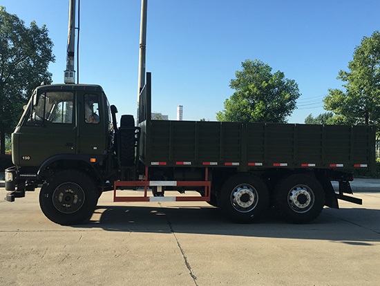 東風(fēng)新款國(guó)五六驅(qū)越野貨車(chē)配置簡(jiǎn)介:采用東風(fēng)EQ2220GD5DJ型越野汽車(chē)底盤(pán),東風(fēng)D530老款駕駛室/D913豪華駕駛室可供選裝,6×6驅(qū)動(dòng),康明斯ISB190 50國(guó)五發(fā)動(dòng)機(jī),六檔變速箱,標(biāo)配315/80R22.5 20PR可換為12.5R20真空越野輪胎,軸距3500+1250mm,加厚雙層大梁,電動(dòng)玻璃,方向助力,斷氣剎,ABS,備胎一套,大箱長(zhǎng)度5米,墻板高度600mm。
