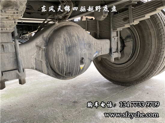 相關(guān)車型國六排放天錦(4×4)越野底盤,采用DFV2163GP6DJ型國六排放東風(fēng)天錦四驅(qū)越野底盤,東風(fēng)天錦D530一排半駕駛室,4×4驅(qū)動,康明斯B6.2NS6B210國六發(fā)動機(jī)210馬力,最大扭矩:850N.m/1100-1700rpm,排量6.2L、韶齒手動六檔變速箱,東風(fēng)德納車橋,前驅(qū)動橋4.5噸,后橋10噸,10.00R20輪胎,軸距4500mm/4700mm,大梁280mm,電動玻璃,方向助力,斷氣剎,ABS,大燈自動調(diào)節(jié),自動調(diào)整臂,選裝原廠空調(diào)。