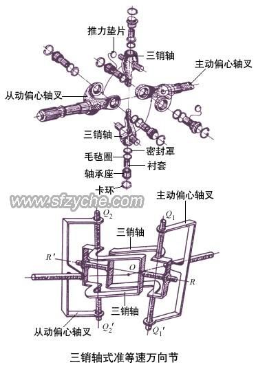 三銷軸式萬向節(jié)的特點是保證兩軸角速度接近相等;允許相鄰兩軸有較大的交角,最大可達45°,可使汽車獲得較小的轉彎半徑,提高汽車的機動性。這種萬向節(jié)的缺點是所占空間較大。優(yōu)點:允許相鄰兩軸間有較大的夾角,用于一些越野車的轉向驅動橋。如需了解更多軍車配件工作原理m.5656115.com
